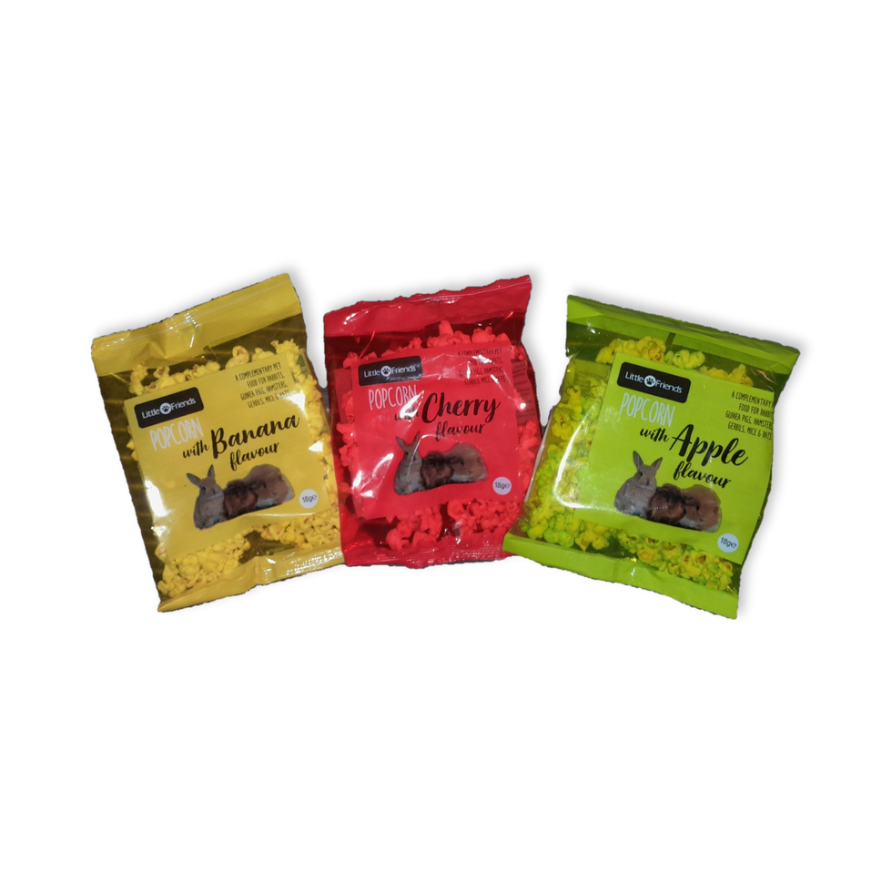 Little Friends Fruity Flavoured Popcorn is a light, crunchy treat specially made for small animals.