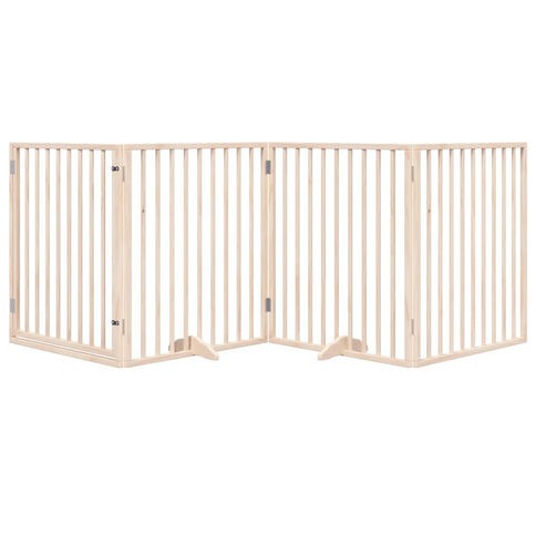 vidaXL Foldable Dog Gate with Door, 4 Panels, 320 cm, Durable Poplar Wood - Pet
